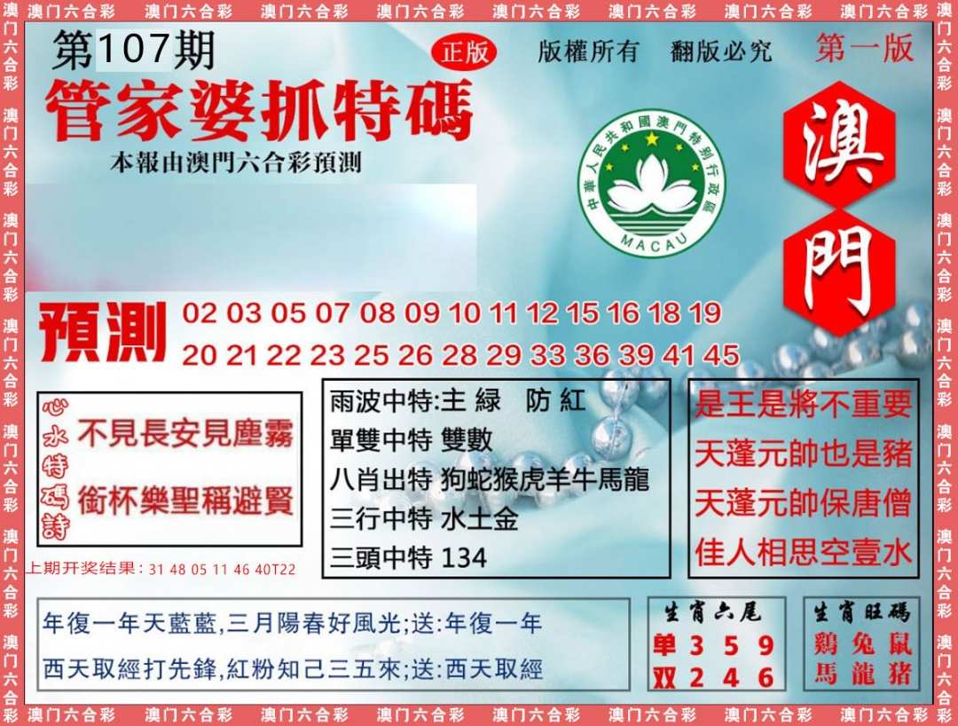 | 107期:【澳状元红】→【平特肖王】★ | |